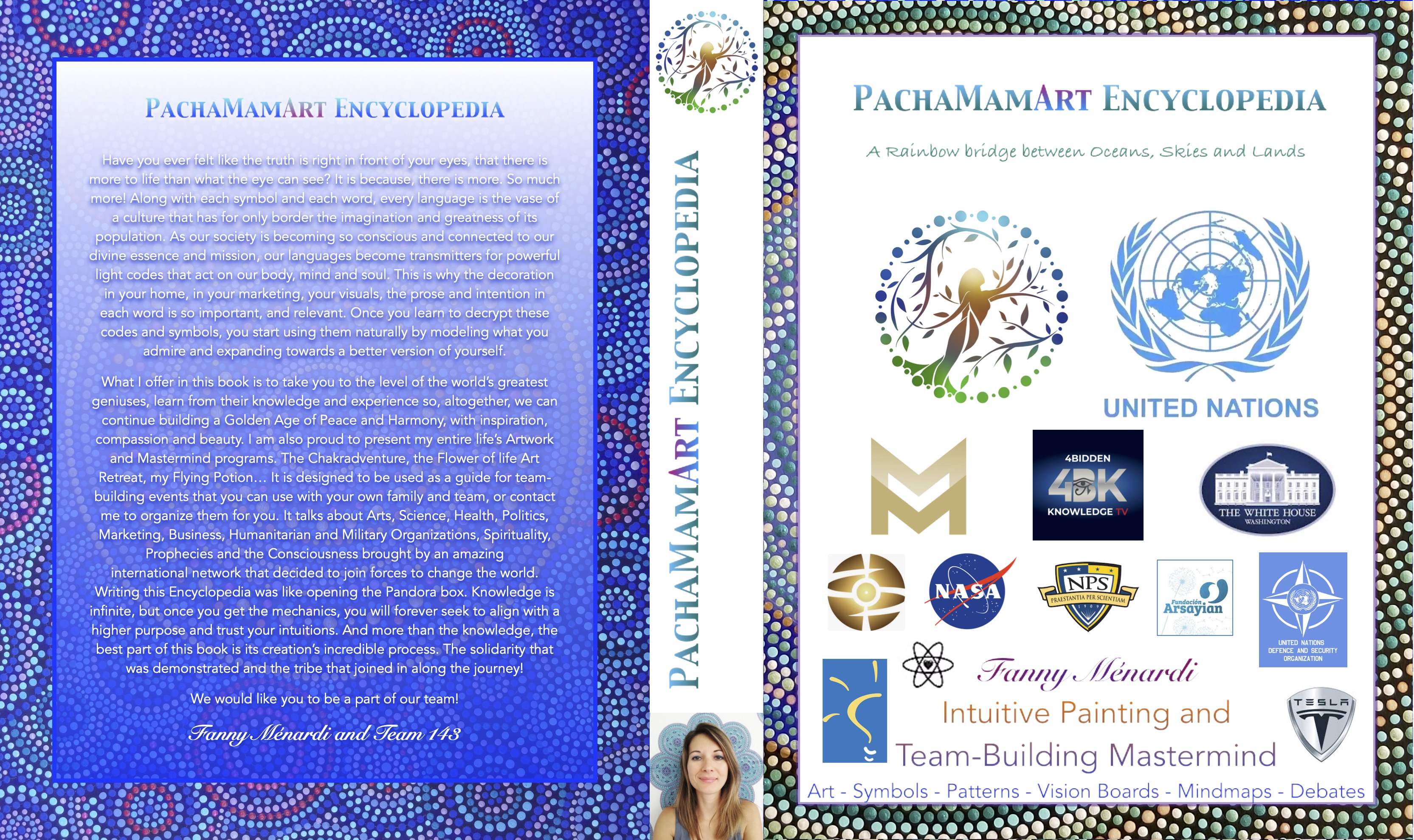 Now that you acquired this book, you MUST read it. All the secrets are in there and I can organize for you a full-week PachaMamArt Encyclopedia Team-Building Training, to go through each step and concept, create art together and remember it forever. We will implement new strategies for your organization, and you will even be able to repeat this entire training with your teams, use it as conversation starter in your gatherings, inspiration when you are painting, ladies creative nights or counter terrorism communication… possibilities are infinite and I am all about it!